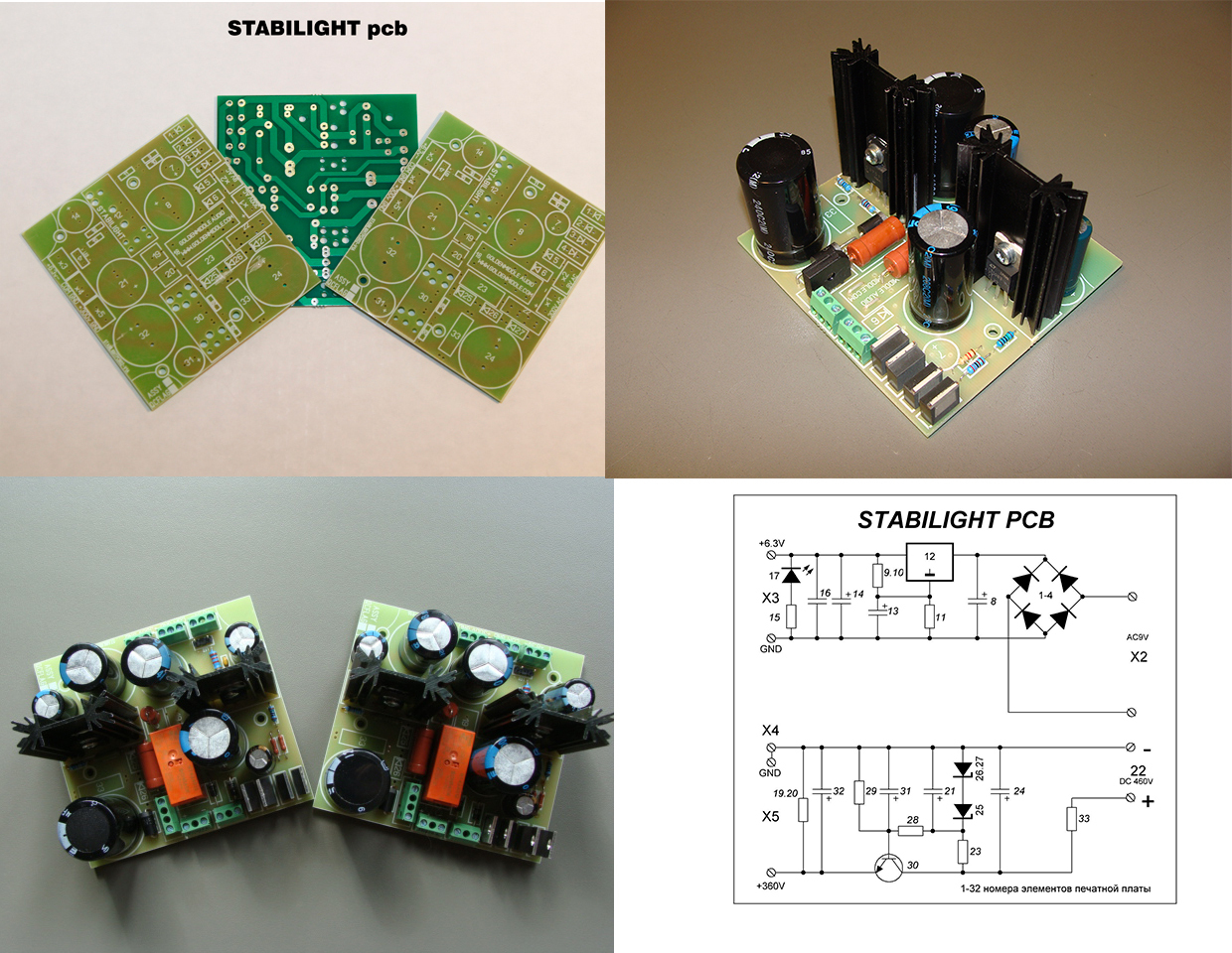 "STABILIGHT" стабилизированный полупроводниковый источник питания для лампового фонокорректора, лампового усилителя - печатная плата с принципиальной схемой и указанием номиналов комплектующих