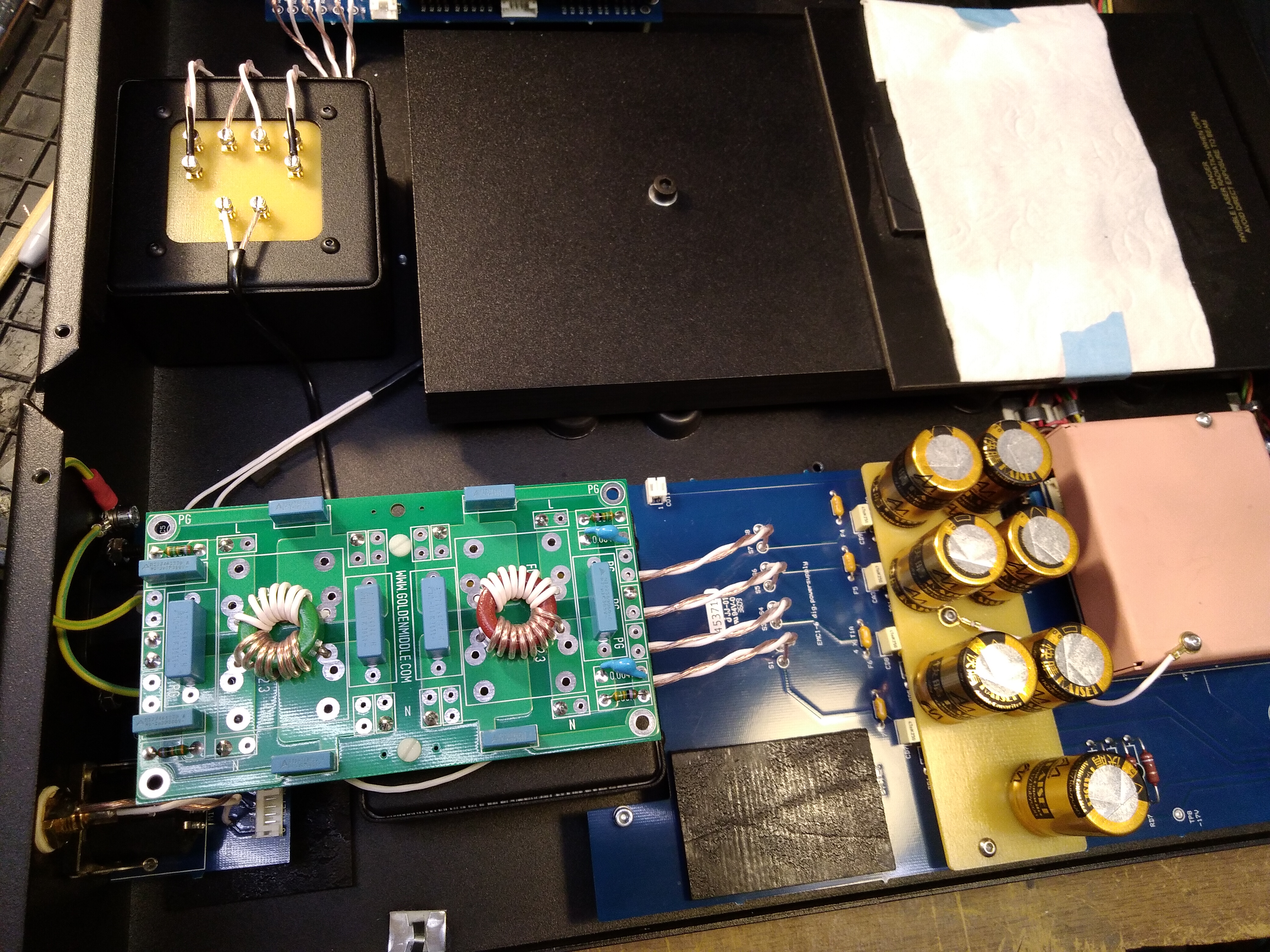 На печатной плате 2 шт EMI фильтра (фильтр электромагнитных и фильтр импульсных помех). Максимальный ток 16А